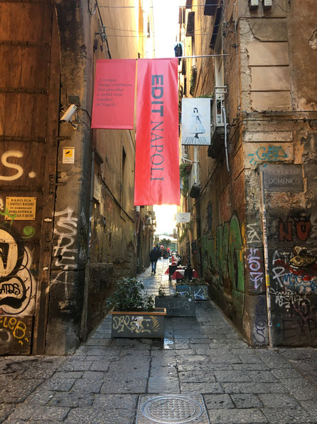 Als römisch-katholische Kirche und Kloster im gotischen Stil erbaut, findet sich das Complesso di San Domenico Maggiore im historischen Zentrum Neapels, eingespannt zwischen der aus antiken Stadtbauzeiten stammenden Decumanus Maggiore (Via dei Tribunali) und der Spaccanapoli (Via Benodotte Groce) wieder. Der Hof der Anlage wird über eine schmale Querstraße, in die nur wenig Licht seinen Weg hinein findet, erschlossen. Gingen bis Ende des 19. Jahrhunderts noch die Mönche des Dominikaner Ordens diese Meter, so sind es an diesem Wochenende die Gläubigen des guten Designs. Den Duft der Straßen von der letzten Nacht in der Nase und den süßen Geschmack der Sfogliatelle noch vom Frühstück auf den Lippen, taucht man aus dem neapolitanische Trubel ab hinein in einen Ort der Sinne und Kreativität.