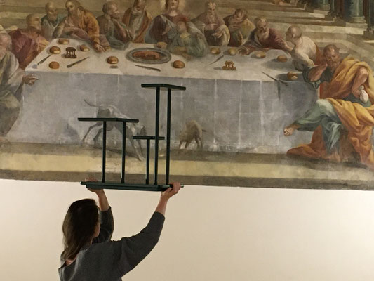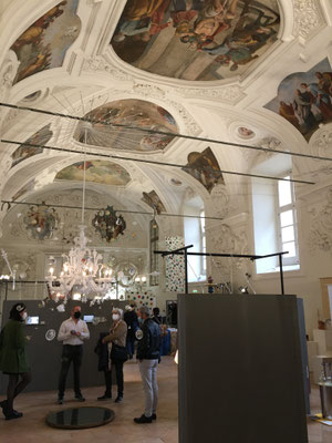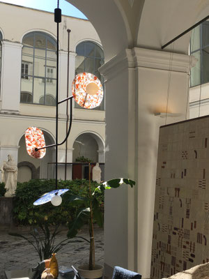 Auf dem Weg in die ehemalige Bibliothek des Klosters beeindruckt der eigens für die Ausstellung geschaffenen Wandteppich mit zeitgenössischen Emblemen der Stadt Neapel. Das Rotterdamer Design Kollektiv 75B knüpft mit seinen stadtspezifischen Kreationen an eine alte Handwerkskunst an und lässt Sehnsüchte nach einer mindestens vier Meter hohen weißen Wand im eigenen Heim aufkommen. Wem diese fehlt kann sich einem der kleineren Nachdrucke der Designs erfreuen.