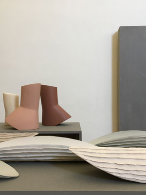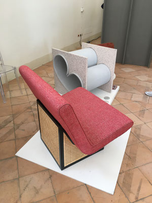 Die Ausstellung im Bereich der Biblioteca besticht ganz im Sinne der früheren Nutzung durch seine stillen Schönheiten. Die sanften Wellen der Madrepora Schalen von Studio Zero in off-white und anthrazit Tönen versetzen die Brandungen der Amalfiküste farblich in die bergige Regionen Norditaliens, während die zarten Kubaturen der tanzenden Menadi Vasen in altrosa bis creme die Hüften nach links oder rechts schwingen lassen. Konventionelle Gegenstände in Kunstobjekte zu verwandeln, ohne dabei sie ihrer Funktion zu berauben, weiß auch das vom Architekten Gae Avitabile gegründete Label Tana Design Studio zu verstehen. So hinterfragt das neueste Werk des Bean Projekts, ein Sessel, die kastenartige Verwendung von Materialen und sprengt veraltete Regeln, die Do’s and Dont’s im Möbeldesign.